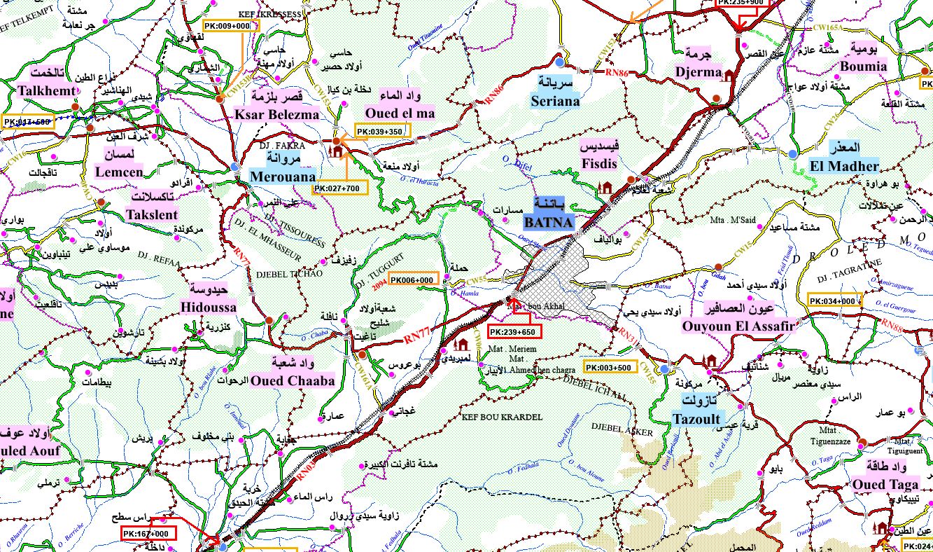 Carte Réseau Routier de la wilaya de Batna par SIG
