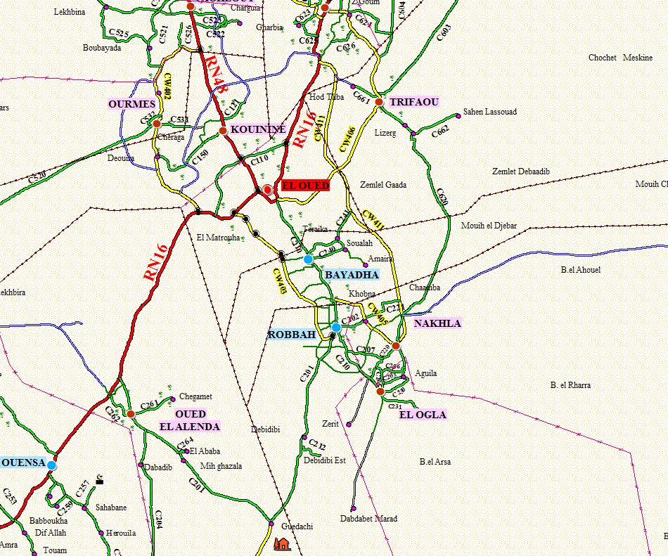 Carte Réseau Routier de la wilaya d’El Oued par SIG
