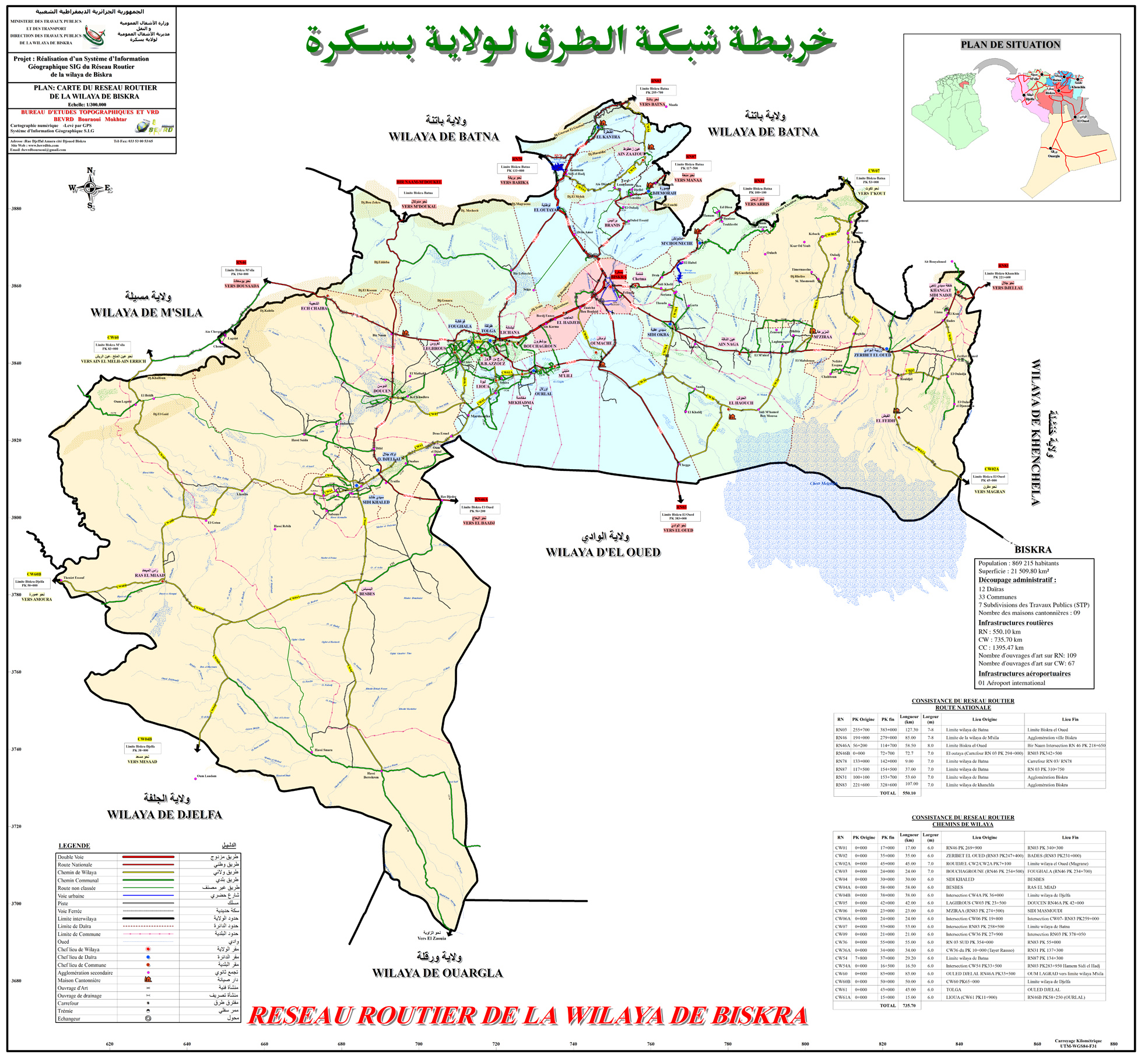 Carte Réseau Routier de la wilaya de Biskra par SIG
